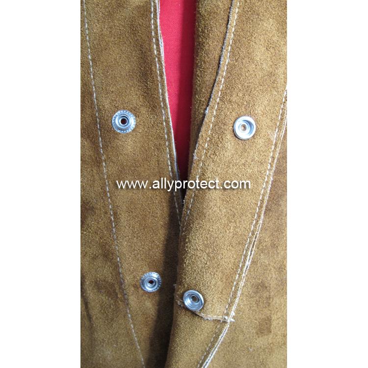 前胸防護條設計,防止燒焊飛濺物濺入衣內,雙層皮設計防止撕脫。